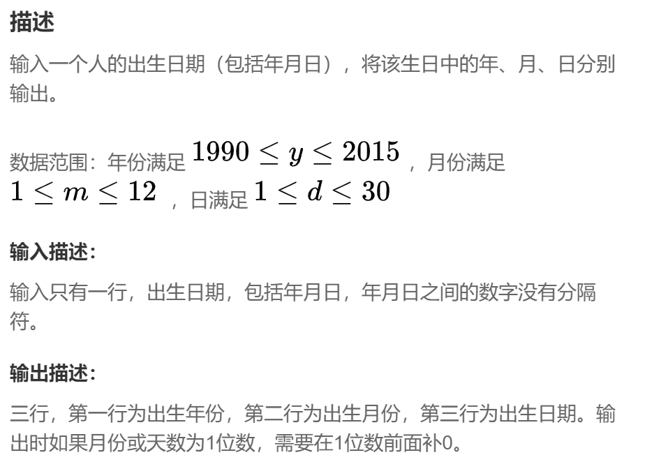 原题链接:出生日期输入输出_牛客题霸_牛客网