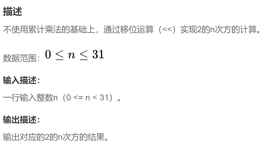 原题链接:2的n次方计算_牛客题霸_牛客网