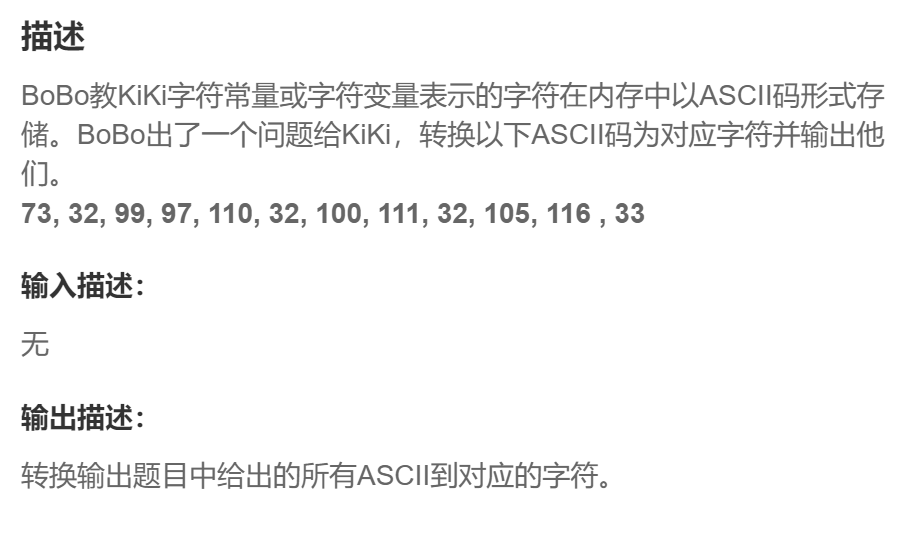 原题链接:ASCII码_牛客题霸_牛客网