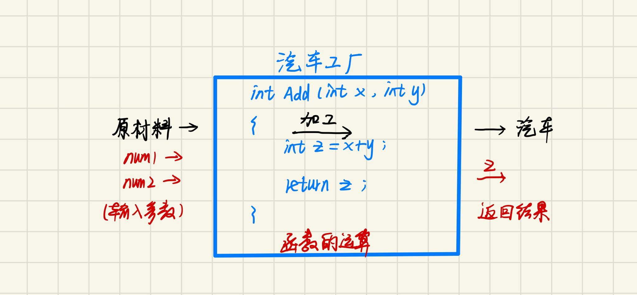 int Add(int x, int y)//int是返回类型,Add是函数名,x和y是函数的形式参数