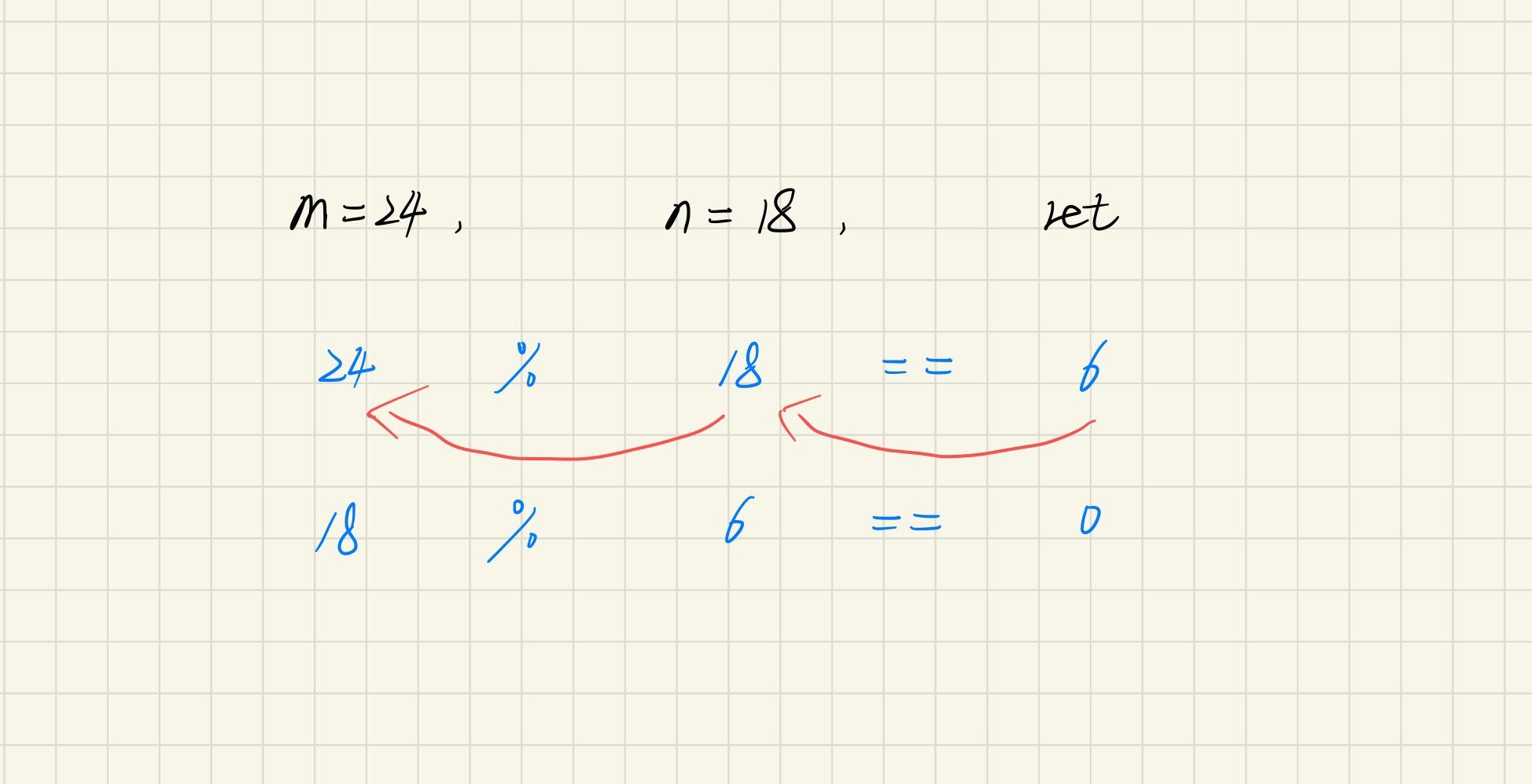 举一个例子,比如求24和18的最大公约数,它再大,也不可能比18还大,所以先假设最大公约数是18,看18能不能把24和18都整除掉,不能的话就减一,最后就能得到答案,emmm,这个方法很暴力,效率很低,大家简单看一下就行了。