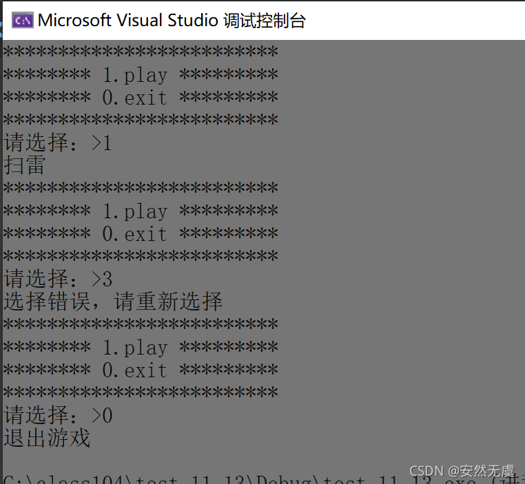 经过测试发现以上代码逻辑没有问题,我们只需要将“扫雷”那块内容封装成函数即可。