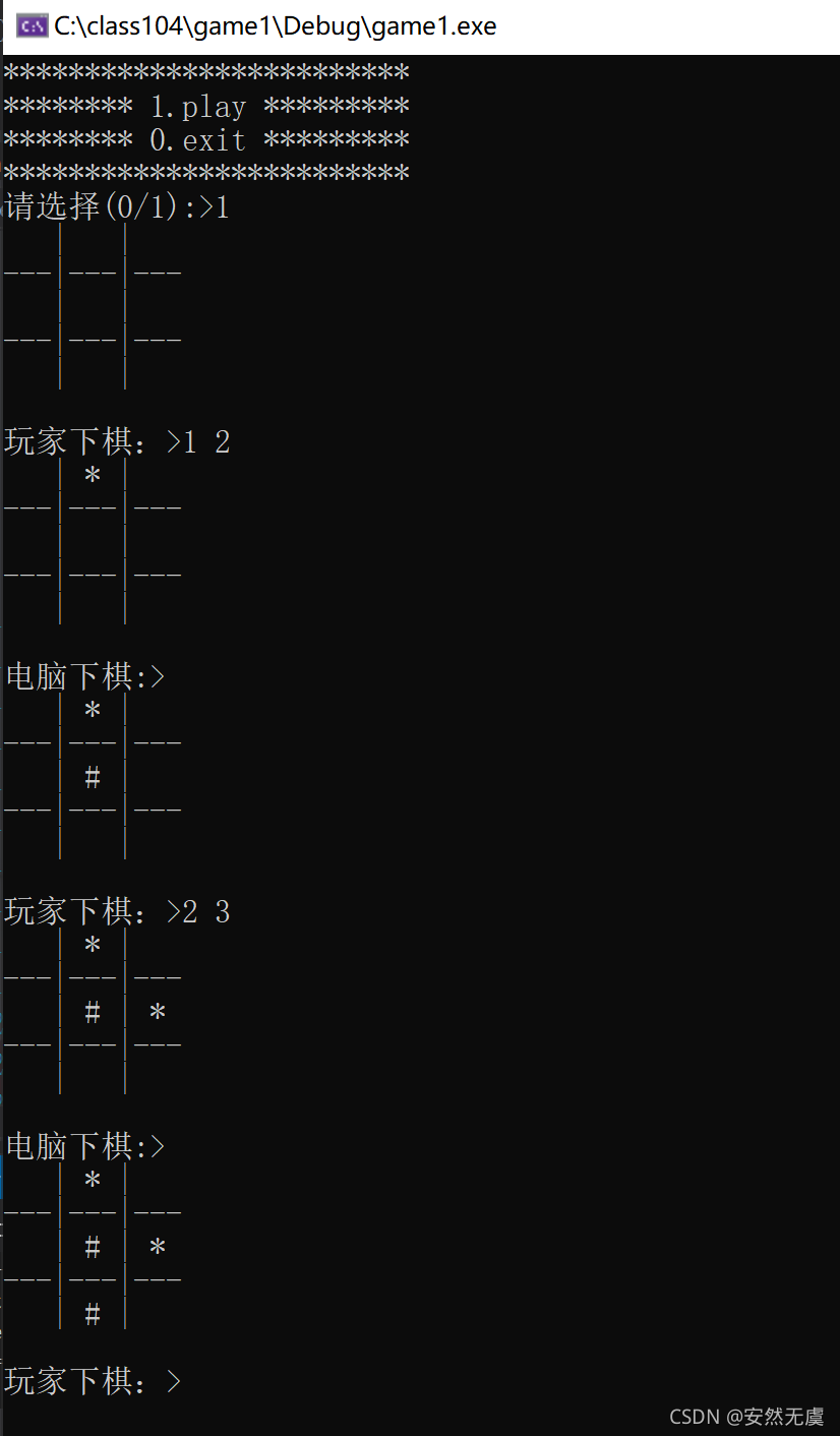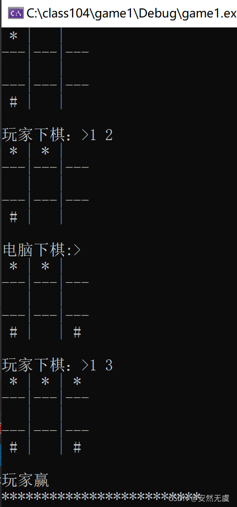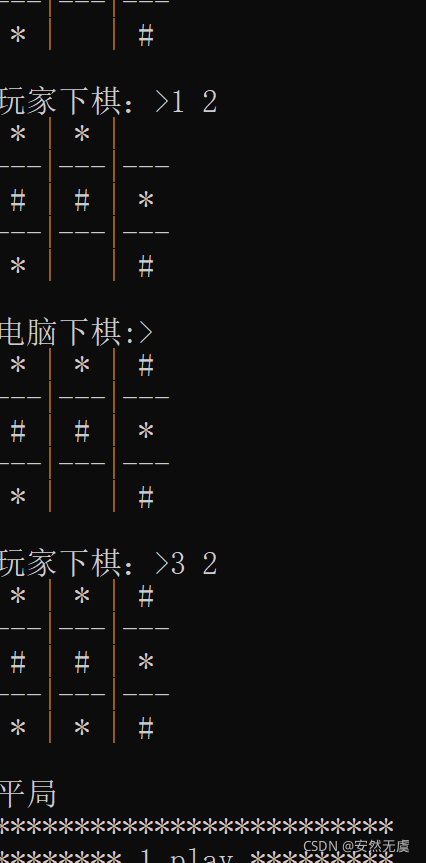 //数据存储到一个二维数组中,玩家下棋'*',电脑下棋'#'