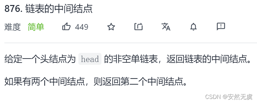 由于该列表有两个中间结点,值分别为 3 和 4,我们返回第二个结点。