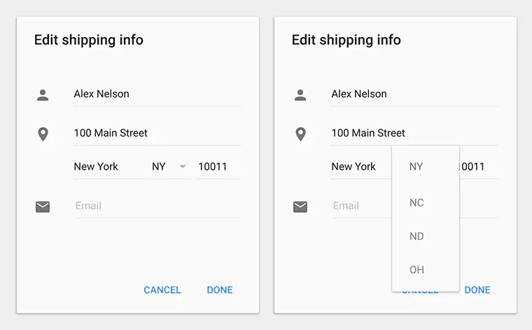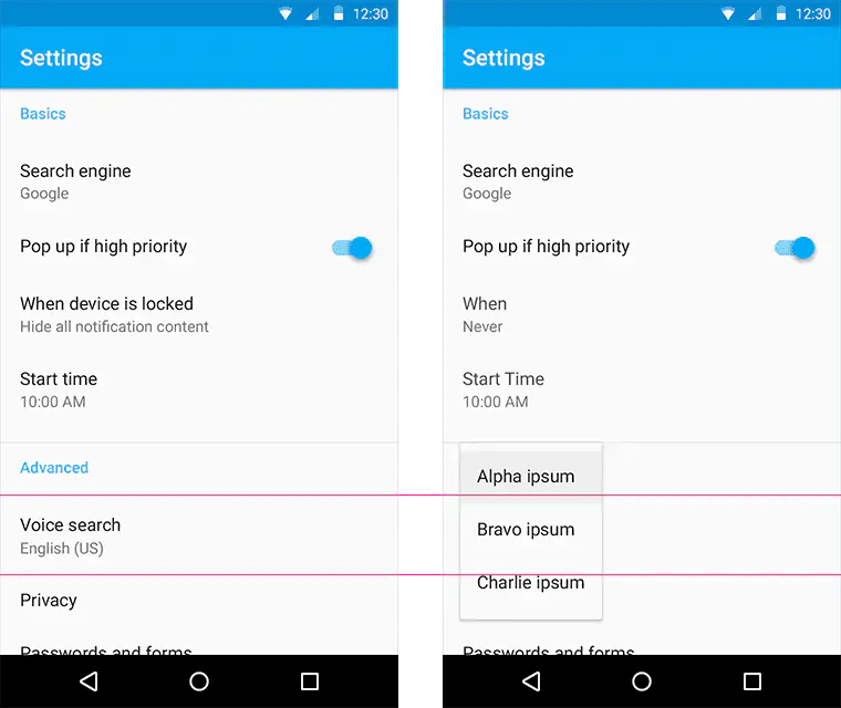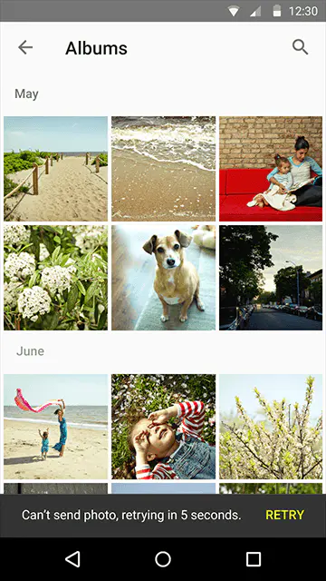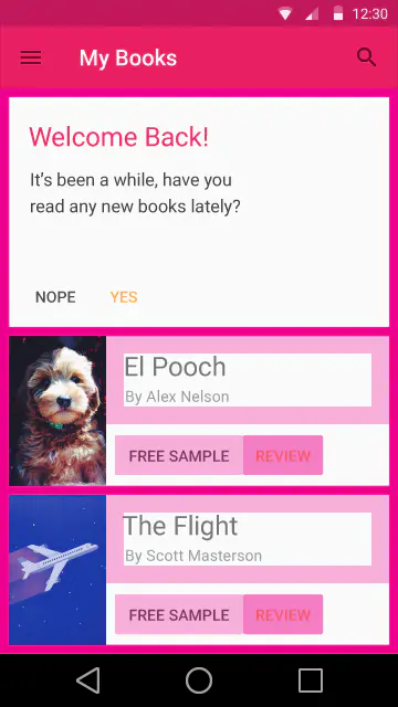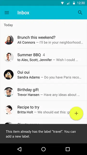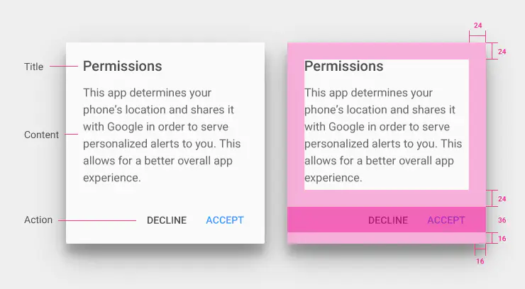 不一定要用户响应的提示,可以使用Snackbars。非常重要的提示,必须用户来决定的,应该用对话框。