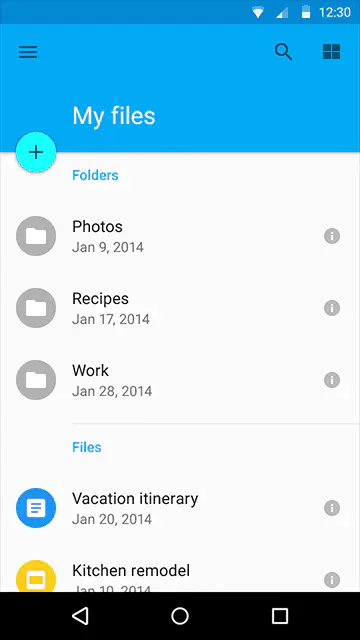 Material Design 中,最重要的信息载体就是魔法纸片。纸片层叠、合并、分离,拥有现实中的厚度、惯性和反馈,同时拥有液体的一些特性,能够自由伸展变形。