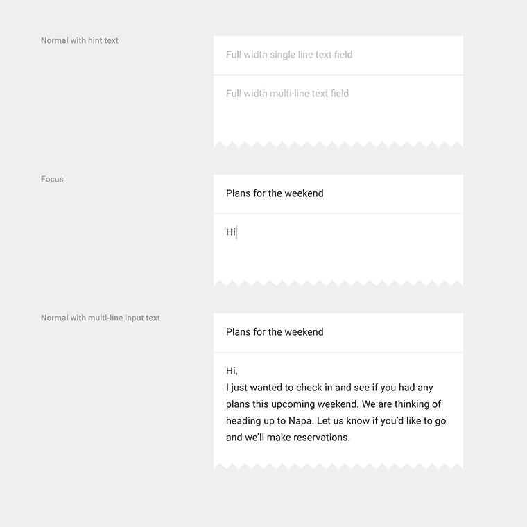 文本框可以让用户输入文本。它们可以是单行的,带或不带滚动条,也可以是多行的,并且带有一个图标。点击文本框后显示光标,并自动显示键盘。除了输入,文本框可以进行其他任务操作,如文本选择(剪切,复制,粘贴)以及数据的自动查找功能。