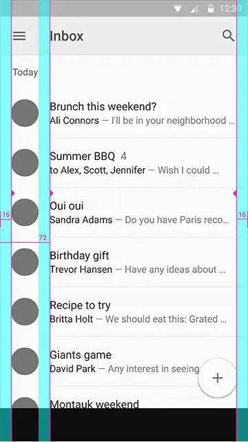- Android 设计规范中间距单位是 dp,dp 在 Android 机上不同的密度转换后的 px 是不一样的,所以按照设计图的 px 转换成 dp 也是不一样的。