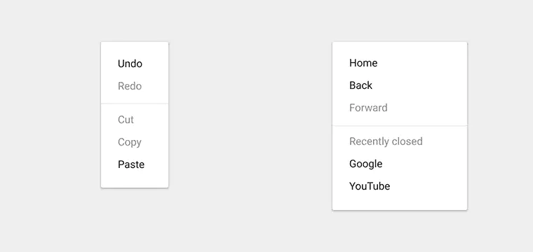 顺序固定的菜单,操作频繁的选项放在上面。