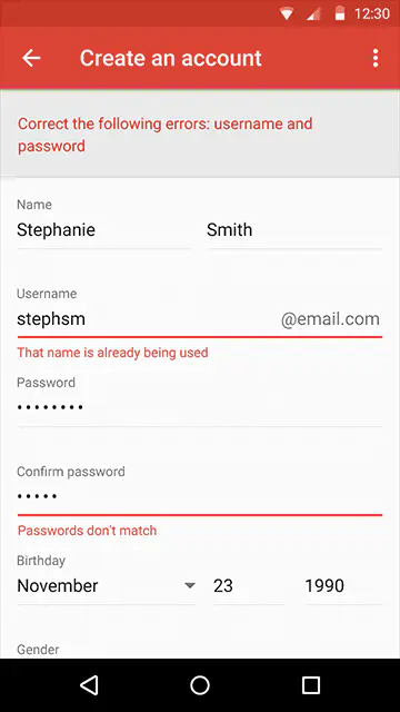 错误提示显示在输入框的左下方。默认提示文本可以转换为错误提示。