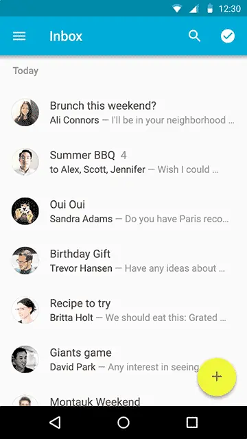 Material Design 重视动画效果,它反复强调一点:动画不只是装饰,它有含义,能表达元素、界面之间的关系,具备功能上的作用。