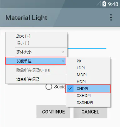 现在,多数标注工具都支持 dp 标注功能,比如 MarkMan,如果UI设计者是按照1280*720的尺寸设计的效果图,在标注时选择xhdpi即可: