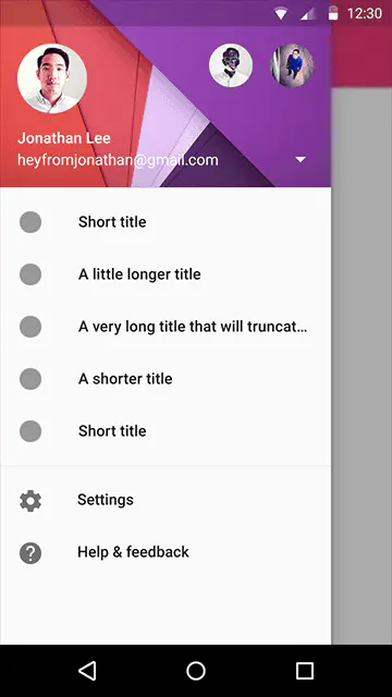 设置和帮助反馈通常放在侧边抽屉中。如果没有侧边抽屉,则放在Appbar的下拉菜单底部。
