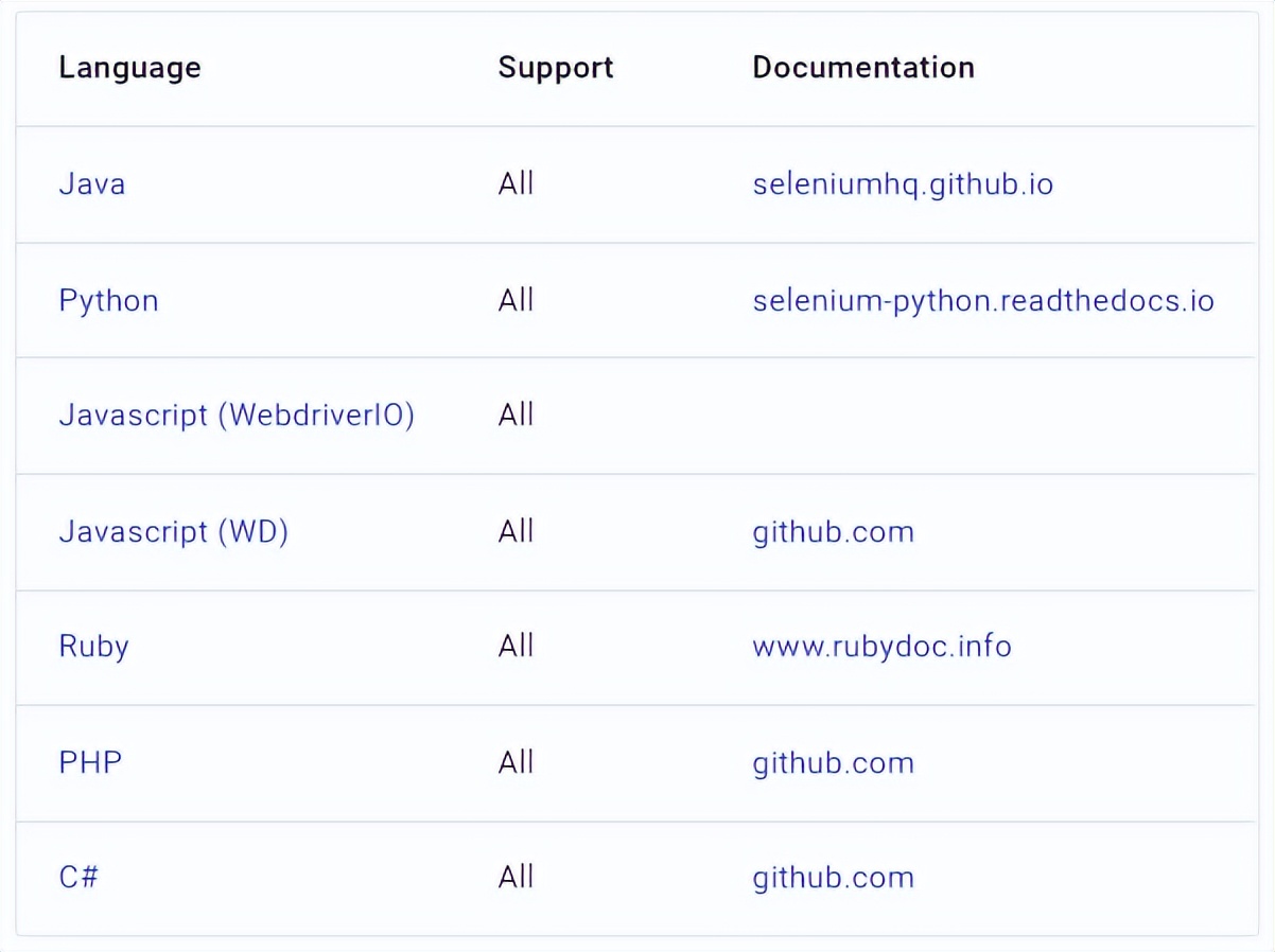 Appium 支持如下语言编写测试用例: