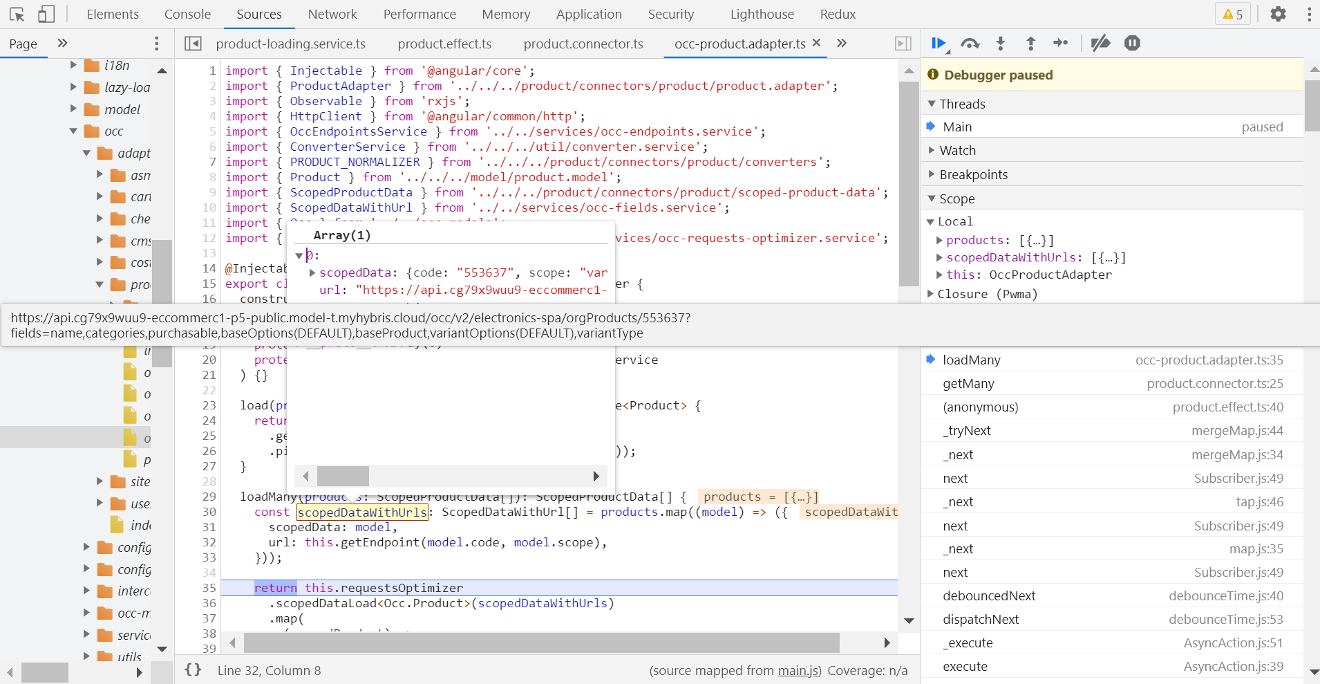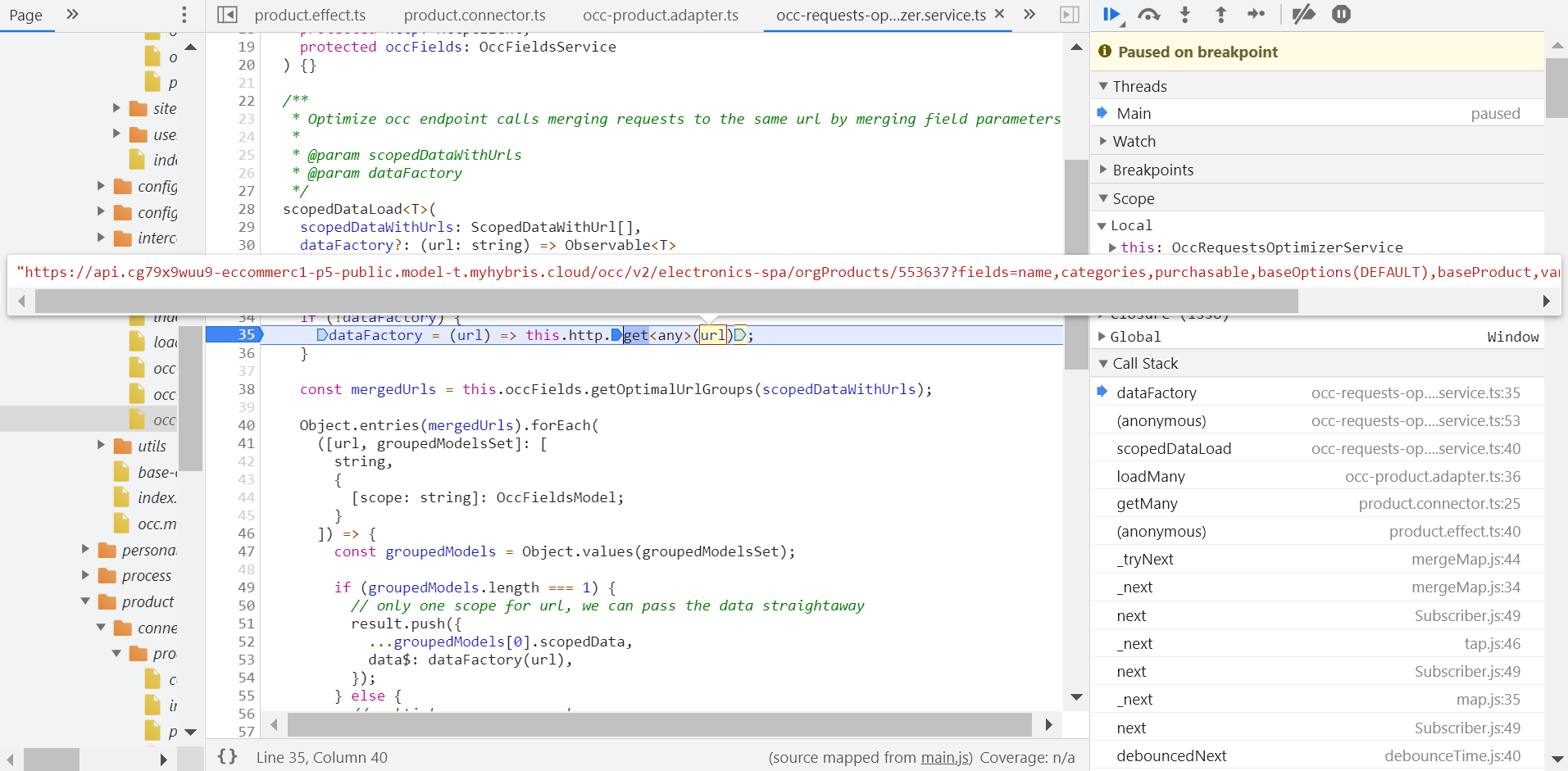 下图就是我们最终要找到代码,SAP Spartacus 最终还是通过 http client, 请求对应 url 代表的资源: