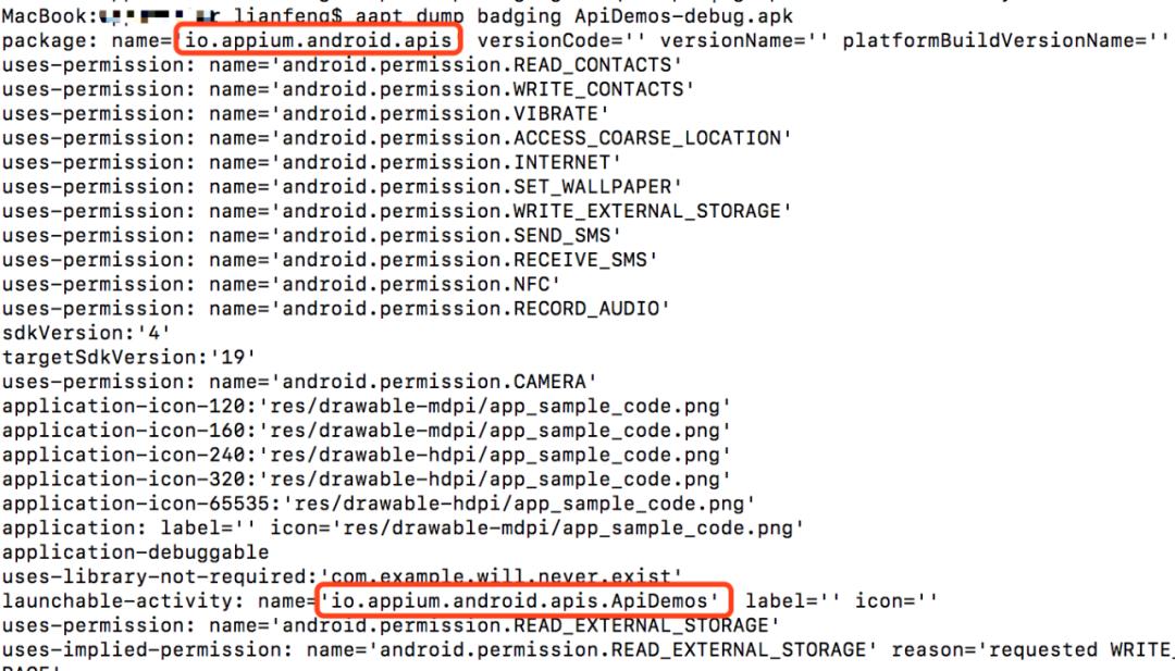 图中“package:name”对应的结果是包名,“Lauchable-activity:name”对应的结果是“包名+页面名”。但是有些不符合规范的应用,通过 aapt 命令无法获取到 “Lauchable-activity:name” 这部分内容。