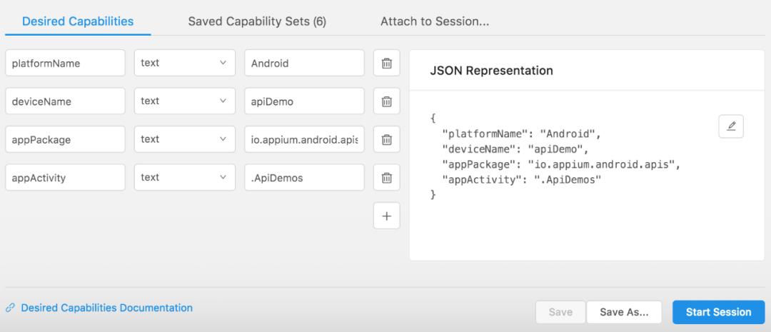- appActivity:App 启动的首页 Activity(“.ApiDemos”或者“io.appium.android.apis/.ApiDemos”)