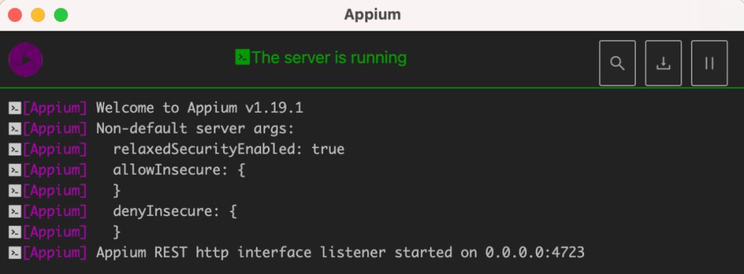 下载对应系统的 Appium 版本,安装完成之后,点击 “Start Server”,就启动了 Appium Server。