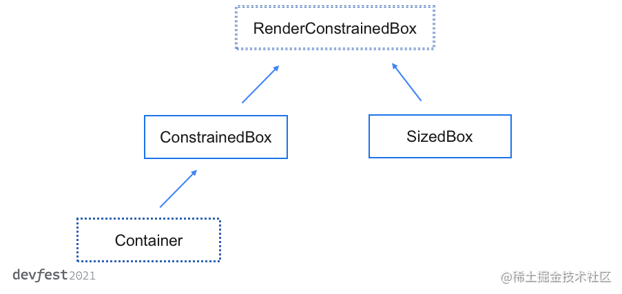 在 Flutter 最常用的就是应是 Container 了, Container 作为 Flutter 里最常用的抽象配置模版,它在宽高布局这一块用的是 ConstrainedBox,而不管是 ConstrainedBox 还是 SizedBox, 他们对应的 RenderObject 都是 RenderConstrainedBox。
