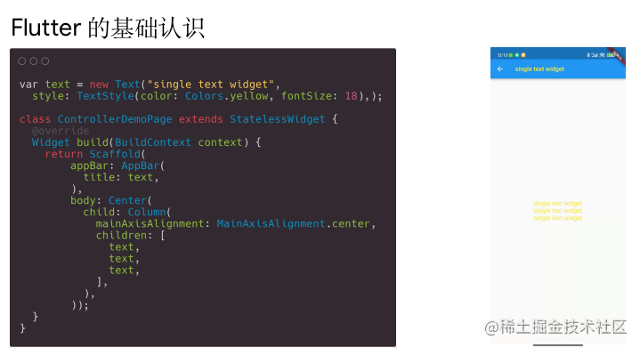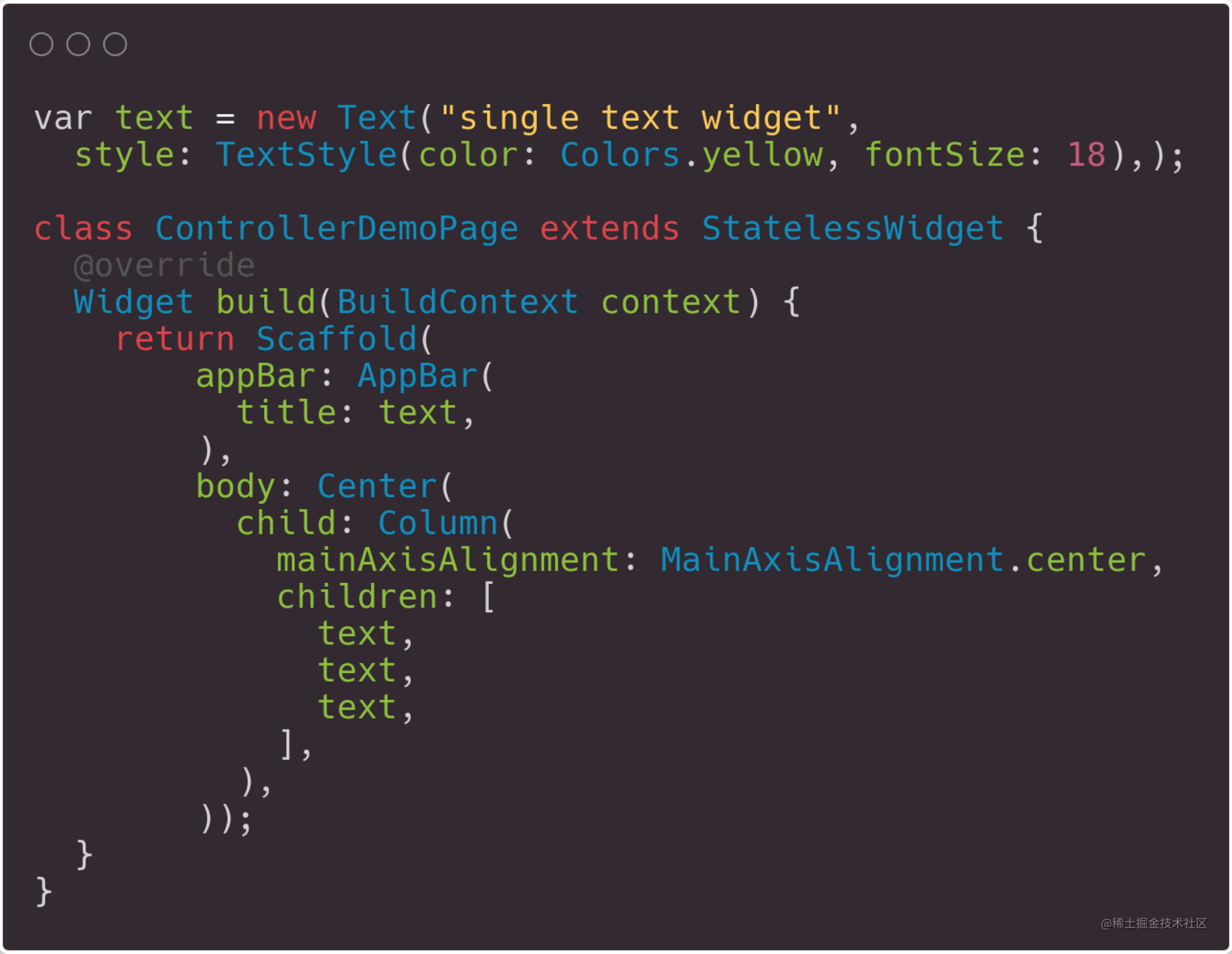 比如下图,这是我们前面看到的例子,这里使用了 Column 控件对多个 Text 进行布局。