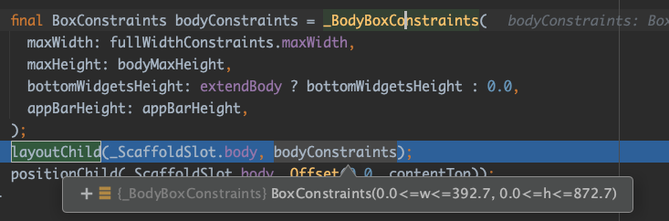Scaffold 内的 CustomMultiChildLayout 布局时,对 body 使用了一个叫 _BodyBoxConstraints 的 Constraints 子类,这个类默认下所有 min 都是 0。