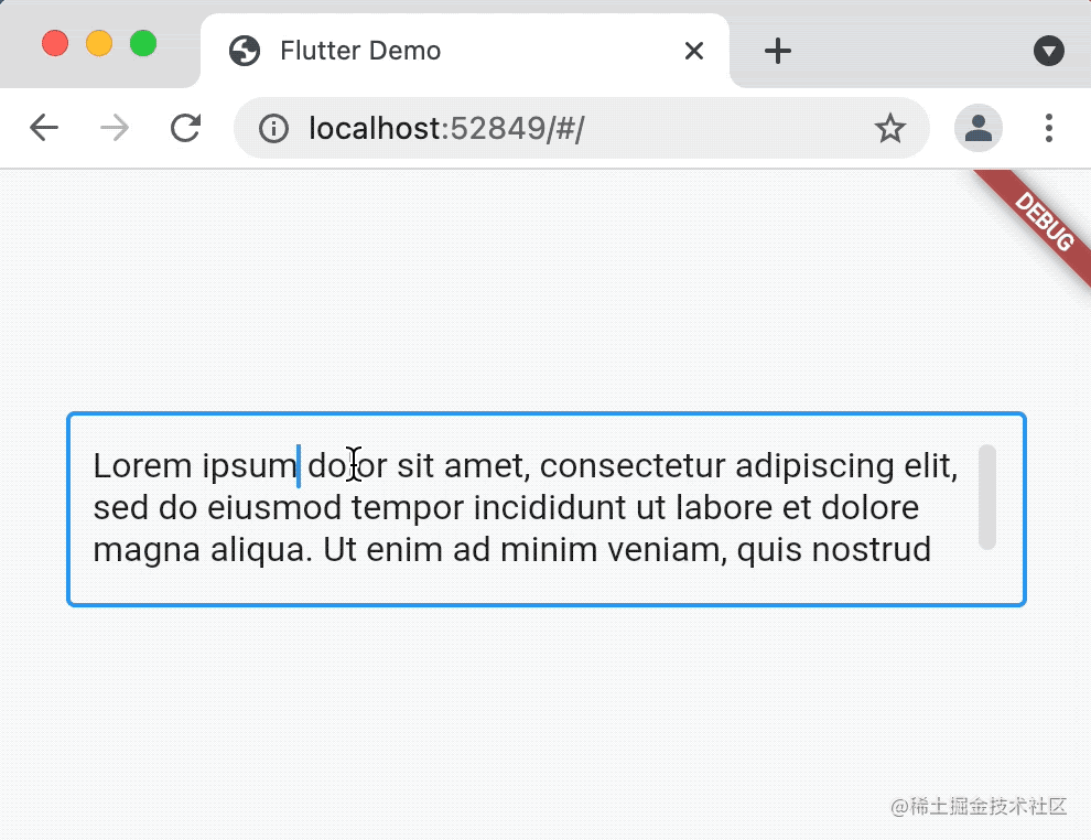 例如在以前的版本中,在 Web 上滚动多行的 TextField 到边缘时它不会正确滚动,而在 Flutter 2.10 下 edge scrolling for text selection 支持当选中滚动超过 TextField 的范围时,内容依然可以继续正常滚动,改更新适用于 Web 和桌面应用。