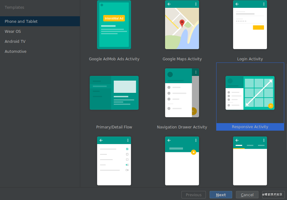 通过 File > New,选择 New Project 或 New Module,然后选择 Responsive Activity 模板。