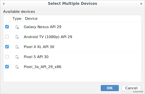 Instrumentation tests 现在可以在多个设备上并行运行,并且可以使用专门的 Instrumentation tests 结果面板进行调查。使用此面板可以确定测试是否由于 API 级别或硬件属性而失败。