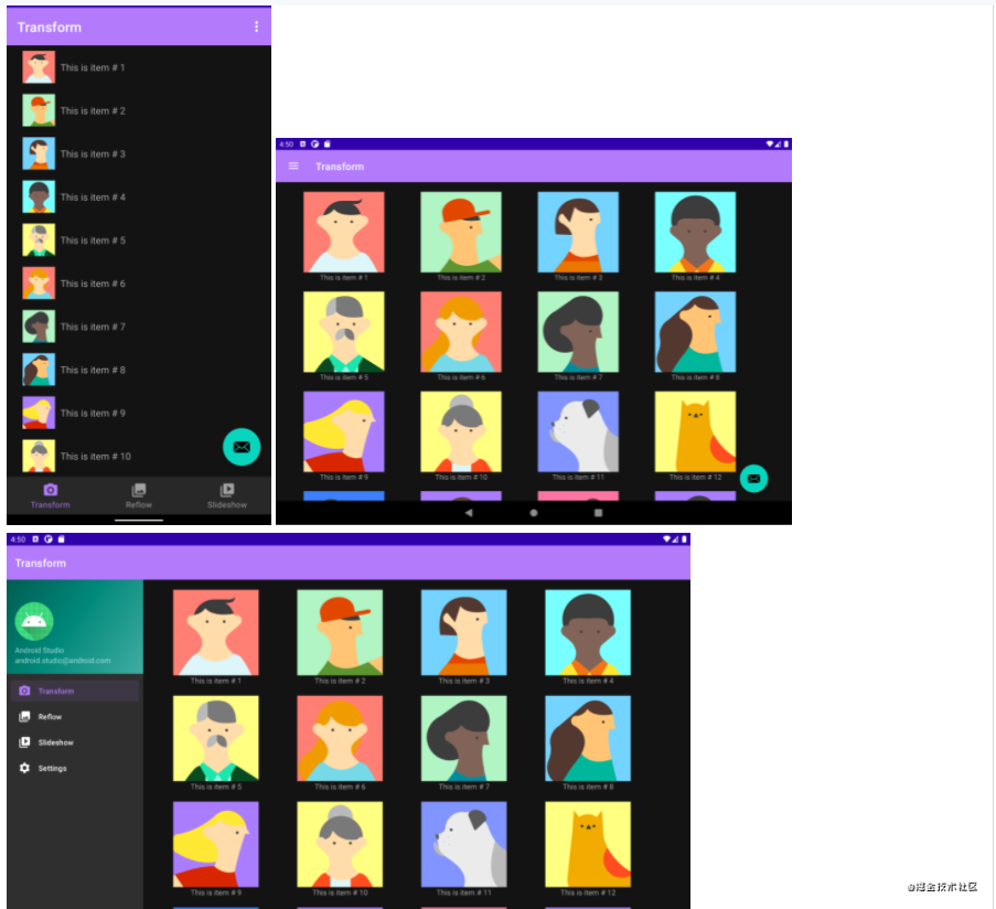 Android Studio Arctic Fox 现在包含一个新的布局模板,可适应各种显示尺寸和应用调整大小,例如手机、可折叠设备、平板电脑和分屏模式。