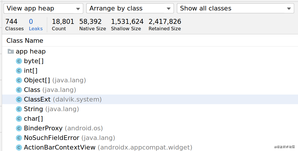 - Record Java/Kotlin allocations:查看每个 Java/Kotlin 对象在一段时间内是如何分配的。