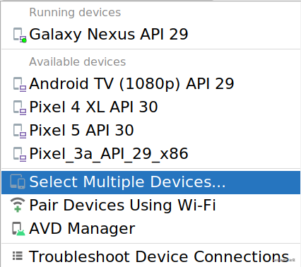 - 1、在 IDE 顶部中心的目标设备下拉菜单中选择 Select Multiple Devices 。