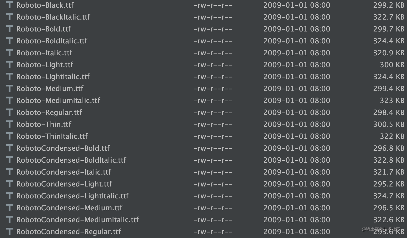 我们知道 Flutter 默认在 Android 上使用的是 Roboto 字体,而在 iOS 上使用的是 SF 字体,但是其实 Roboto 字体也是分很多类型的,比如你去查阅手机的 system/fonts 目录,就会发现很多带有 Roboto 字样的字体库存在。