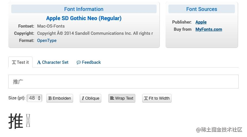 解决方法也很简单,就是给 fontFamilyFallback 配置上 ["PingFang SC" , "Heiti SC"] 就可以了,这是因为韩文在苹果手机上使用的应该是 Apple SD Gothic Neo 这样的超集字体库,【广】这个字符在这个字体集上是不存在的,所以就变成了中文的【广】;