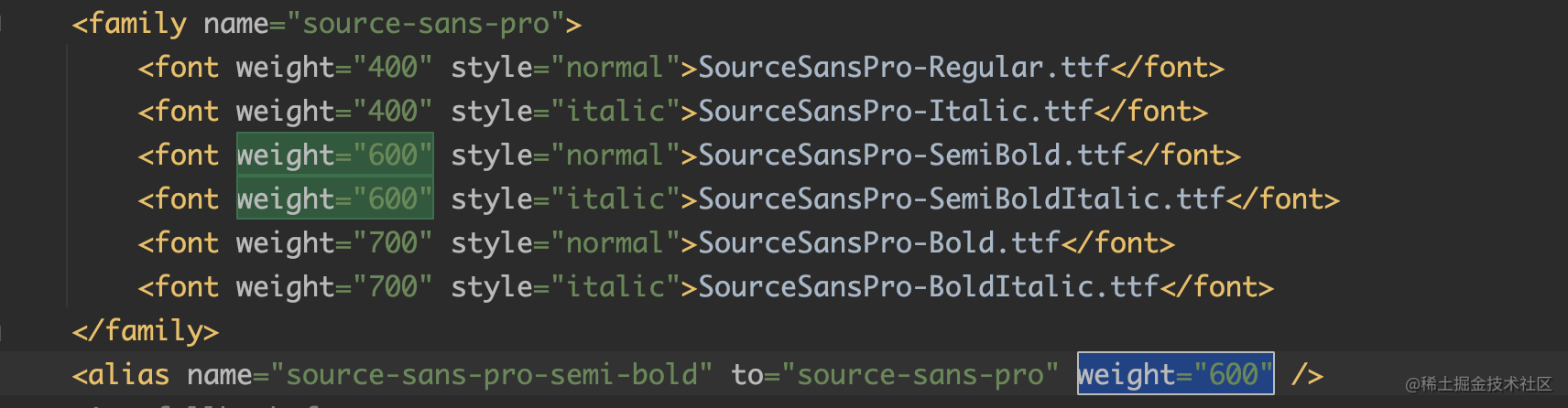 所以 Roboto 之类的字体库是一个很大的字体集,不同的 font-weight 其实对应着不同的 ttf ,例如默认情况下的 Roboto 是不支持 font-weight 为 600 的配置:
