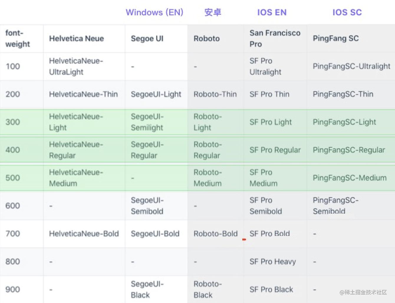 事实上在 dart 里就可以看到对应 FontWeight 约定俗称用的是字体集里的什么字体: