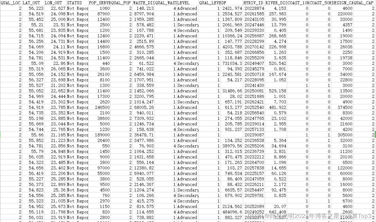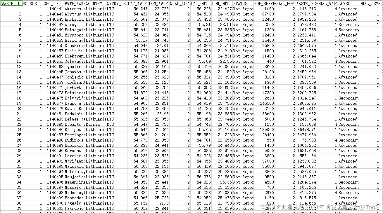 WASTE_ID 在HydroWASTE中的污水处理厂ID