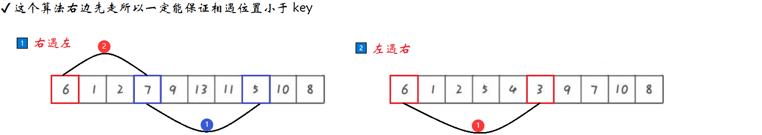 2️⃣ 经过一次单趟后,key 放到了正确的位置,key 左边的值比 key 小,key 右边的值比 key 大
