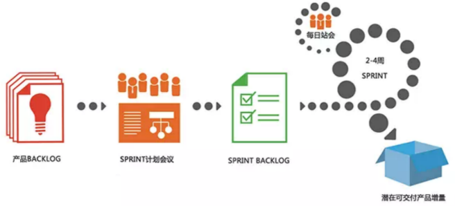 Scrum 中,整个开发过程由若干个短的迭代周期组成,一个短的迭代周期称为一个 Sprint,每个 Sprint 的建议长度是二至四周。