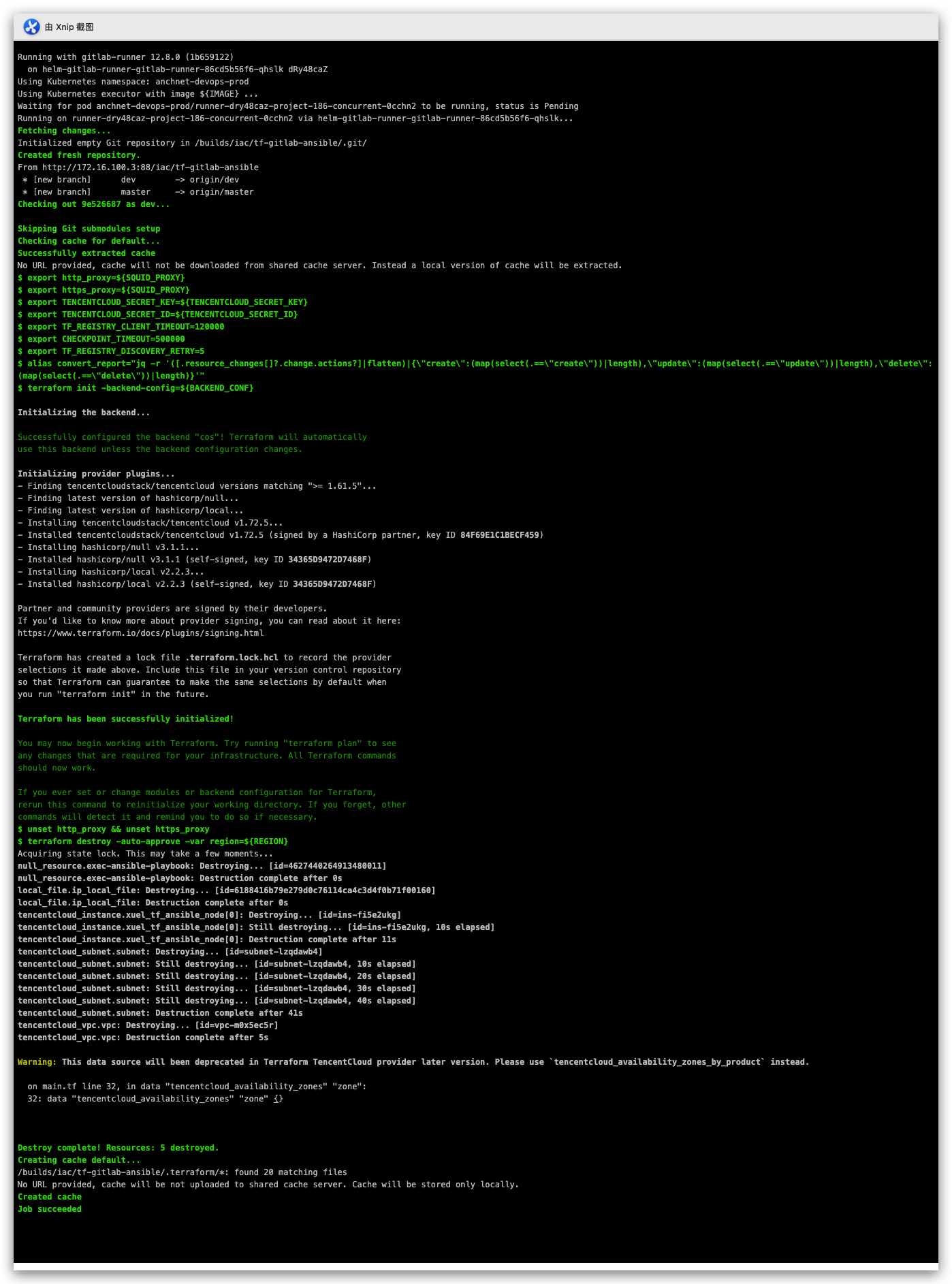 在资源编排结束后,利用Ansible针对编排出来的资源进行ssh登录进行配置管理,因此需要制作包含TF+Ansbile的镜像作为runner执行器,注意在制作镜像时候需关注TF和Ansible的版本。