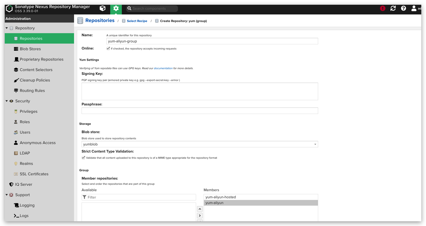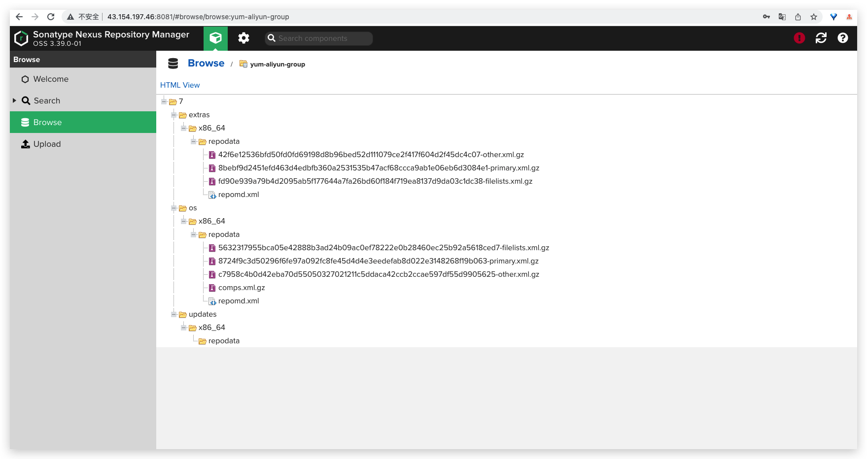 生成的url为:http://43.154.197.46:8081/repository/yum-aliyun-group/