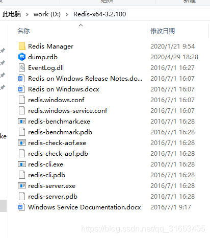 安装成功之后,cmd进入redis安装文件夹,如果默认下一步安装,则redis默认安装在(默认是C:\Program Files\Redis),我的是更改了环境(D:\Redis-x64-3.2.100)