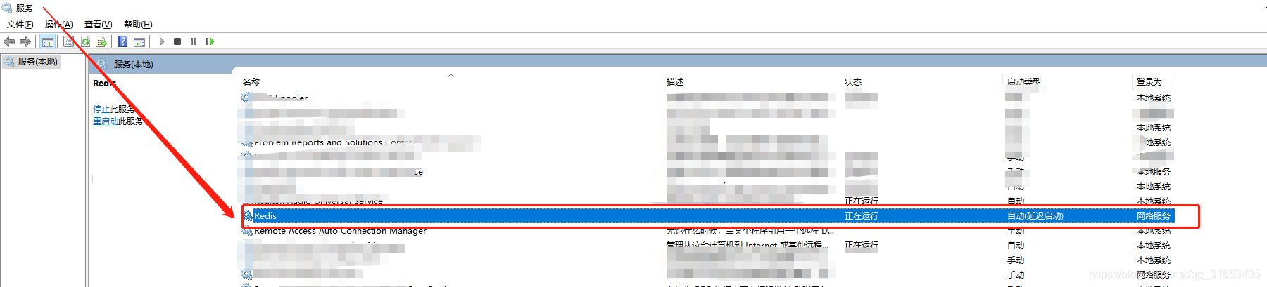 成功安装之后,在服务中将redis设置默认 延迟启动