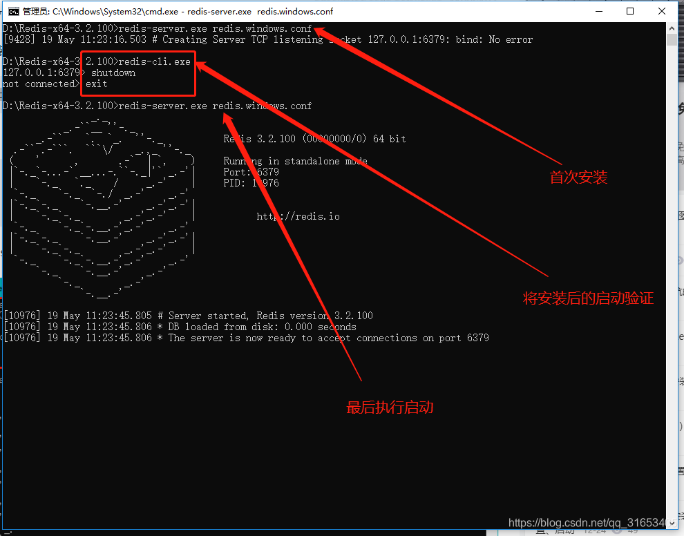 再运行一次redis-server.exe redis.windows.conf即可