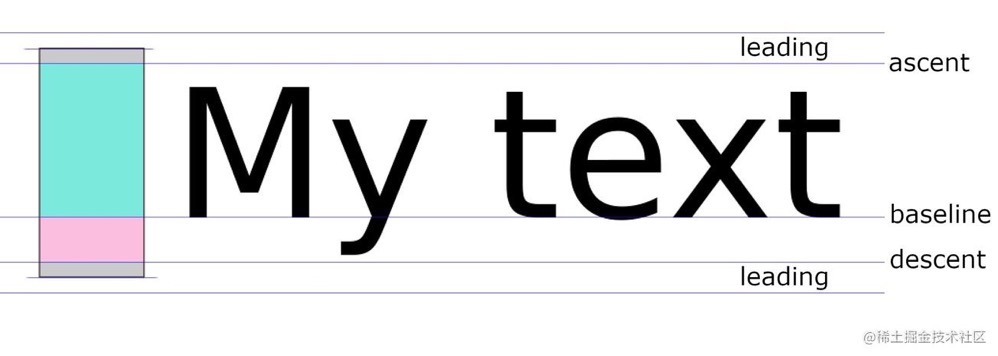 所以 height 参数和文本渲染的高度之间是成倍数关系,具体如下图所示,同时最需要注意的点就是:文本内容在 height 里并不是居中,这里的 height 可以类比于调整行高。