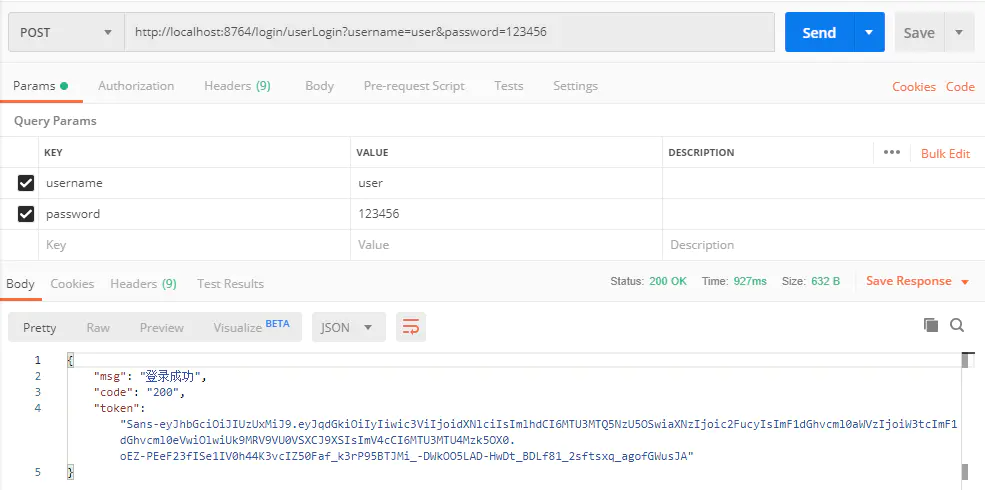 } 登录USER角色账号,登录成功后我们会获取到身份认证的Token