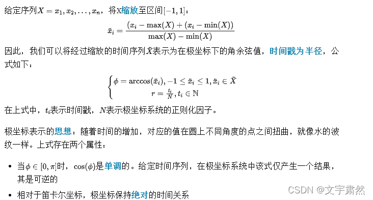 用极坐标代替典型的笛卡尔坐标表示时间序列。在格拉姆矩阵(Gramian matrix)中,每个元素实际上是角的和的余弦。