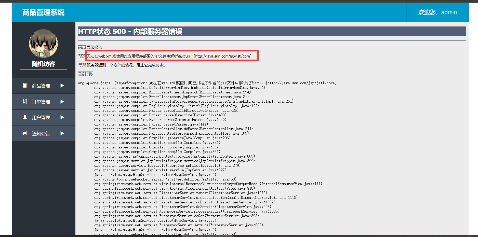 本人是在进行一个ssm框架项目的编写的时候,在数据库中查询到所有的商品信息并返回到页面使用EL表达式进行展现,但是使用tomcat 9.0.58运行的时候报错会出现以下报错情况。