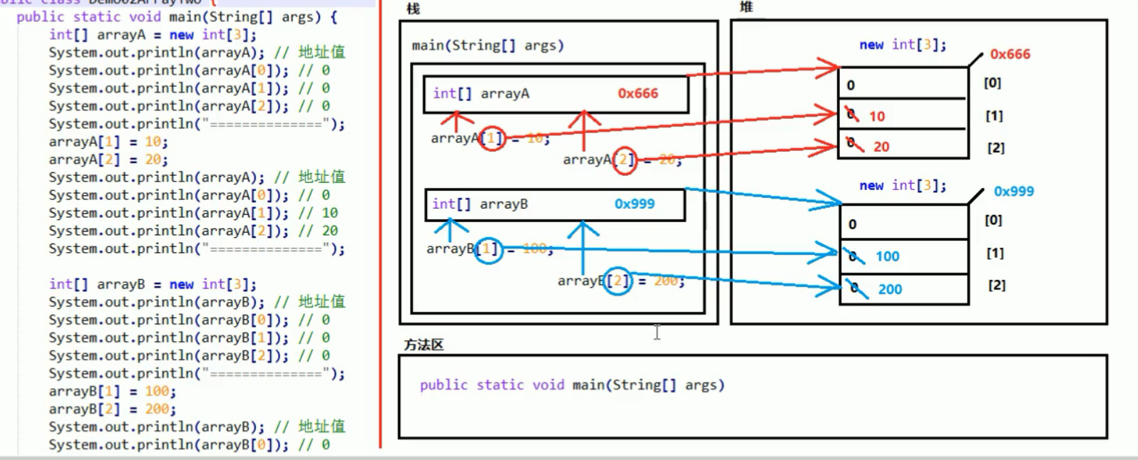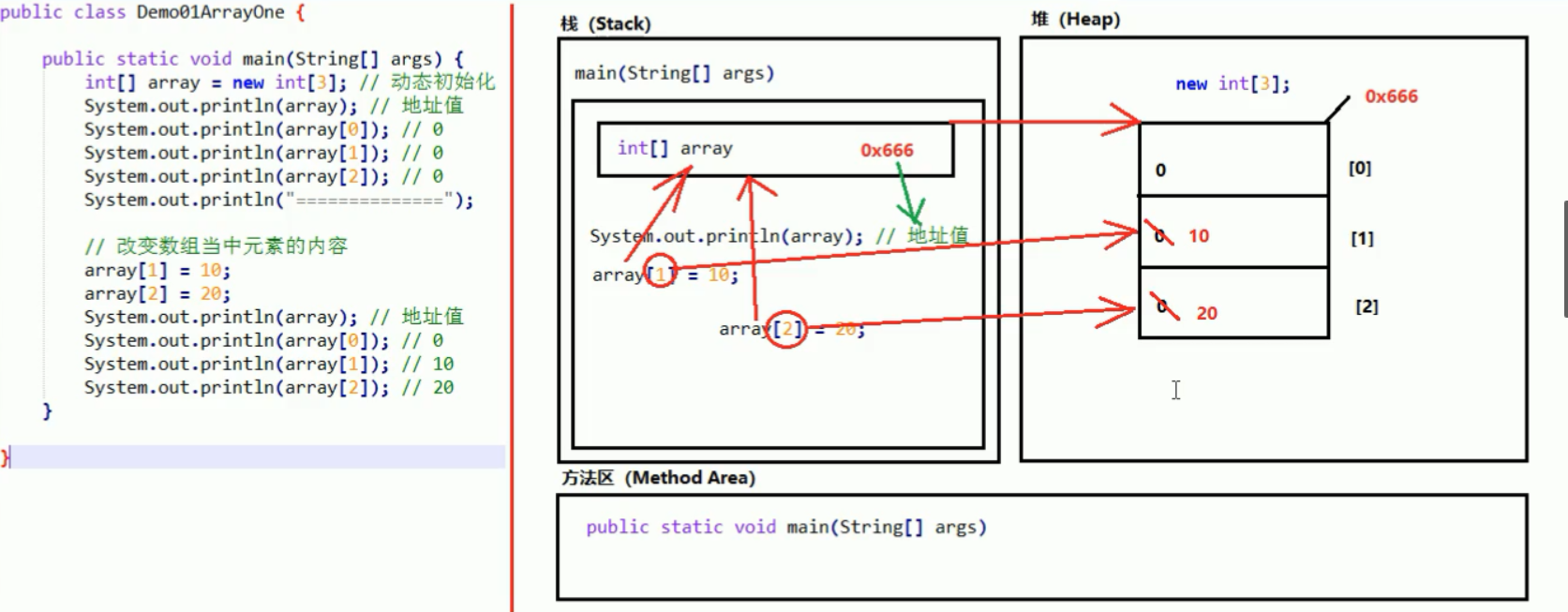 栈内存中的数组对象名称 array 保存的值就 0x666 ,它的new 出来的数组对象在对内存中的地址值;