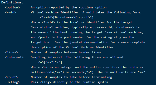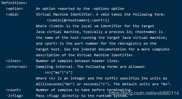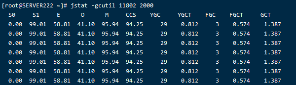 jstat [-命令选项] [vmid] [间隔时间/毫秒] [查询次数]
