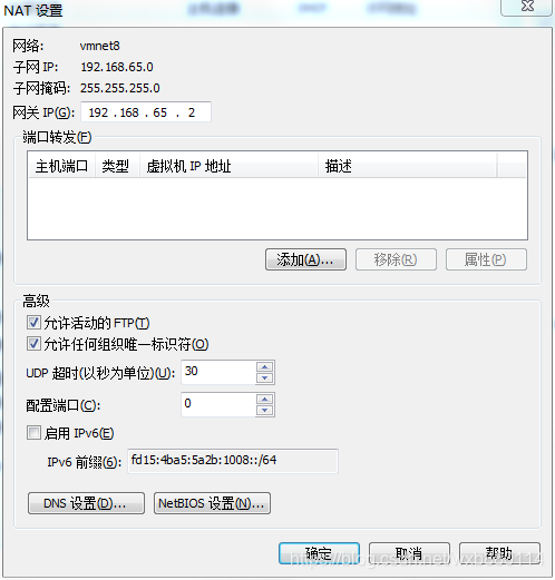 打开虚拟机后,在编辑>模拟网络编辑器>NET设置中查看自己的IP地址、子网掩码、和网关。